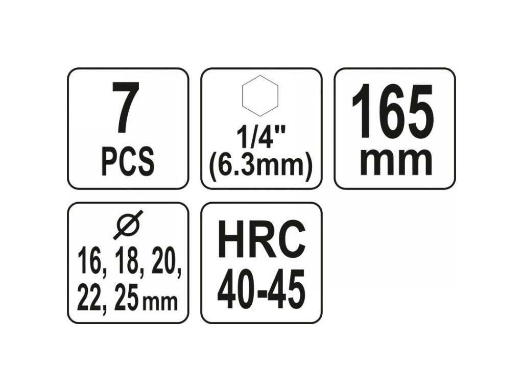 Sada vrtákov do dreva 7 kusov (16-18-20-22-25 mm) 165 mm YATO