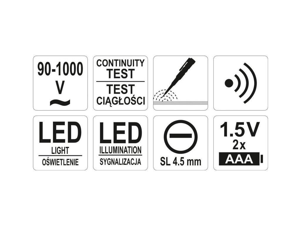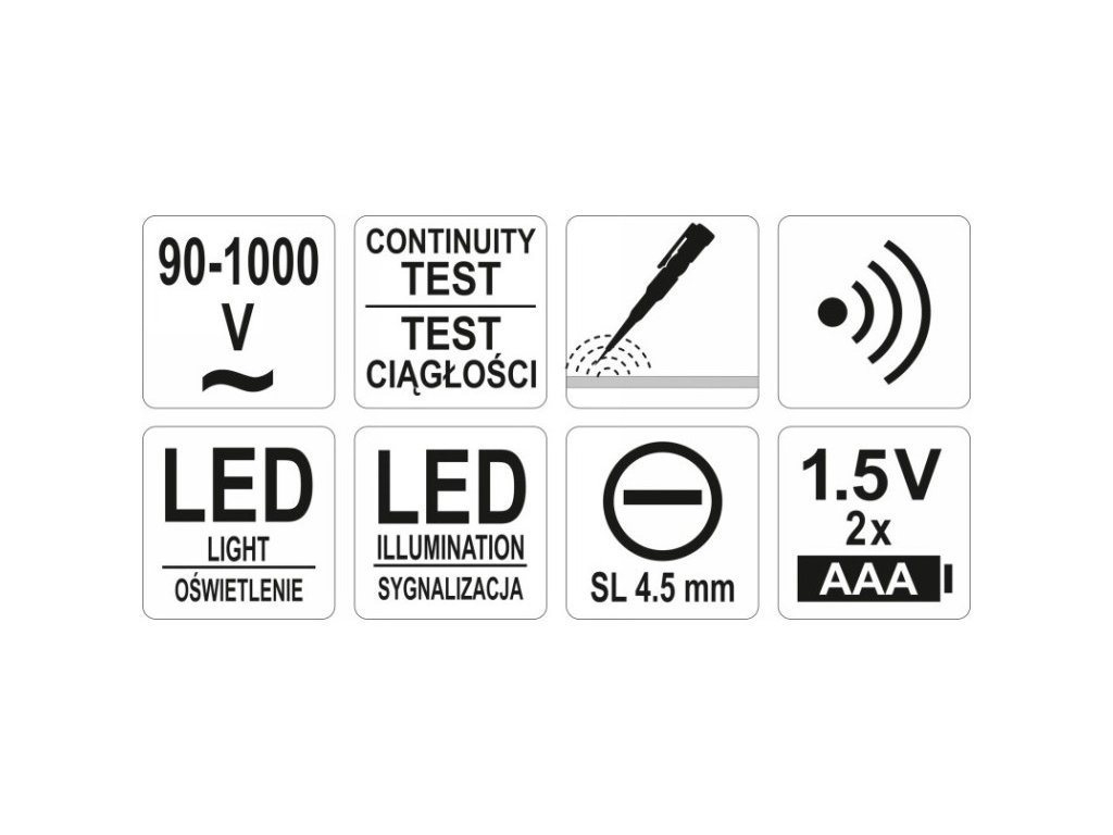 90-1000V tartományban képes érzékelni az elektromos vezetékekben a feszültséget. Emellett lehetővé teszi a vezeték folytonosságának tesztelését is.