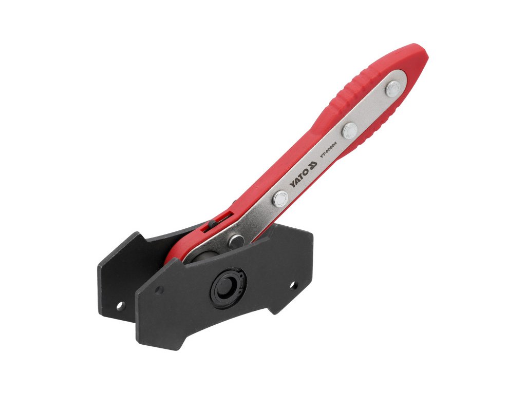 Féknyereg elválasztó, amellyel egyszerre 1, 2 vagy 4 dugattyút nyomhatunk be. Ajánlott autószervizeknek, karosszériázóknak a fékdugattyúk elválasztására és kiváltására. A csigamechanizmus nagy erővel nyomja a dugattyúkat, anélkül, hogy a felhasználót túlterhelné, és garantálja a könnyű és nyugodt működést. Az elválasztó kiküszöböli a dugattyúk egyenlőtlen terjeszkedését a dugulások kockázata nélkül.