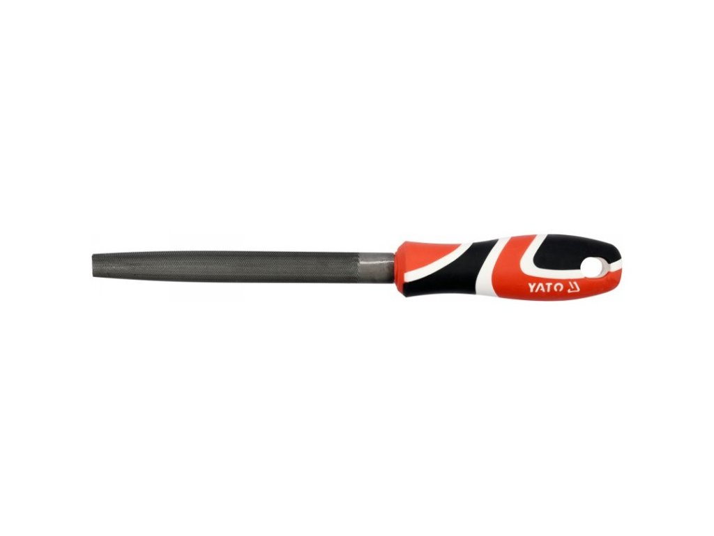 Félkörös, keskenyedő, háromszoros vágású fémfájl, 150 mm, háromkomponensű nyéllel a Yato-tól.