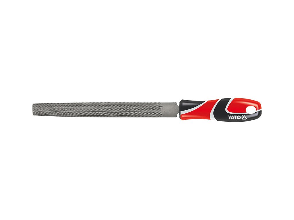 Félkör alakú , lekerekített, kétszeres vágású félfájl 200 mm háromkomponensű fogantyúval a Yato-tól.