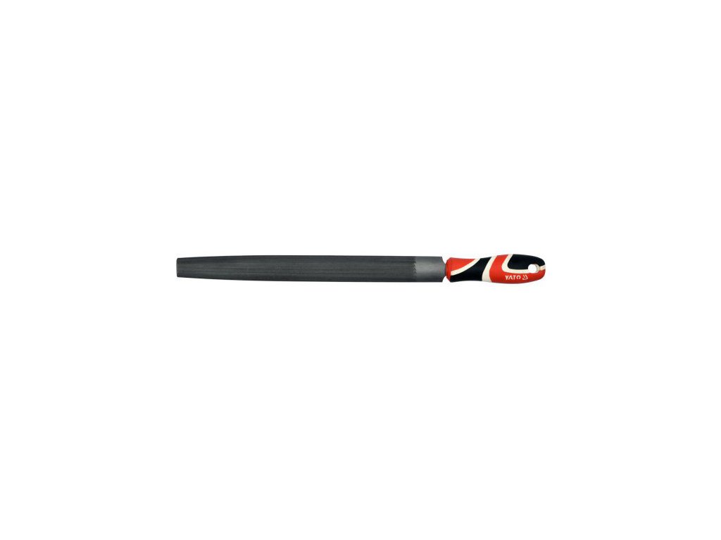 Félkör alakú, vékonyodó, háromszor vágott fémreszelő, 300 mm, háromkomponensű fogantyúval a Yato-tól.