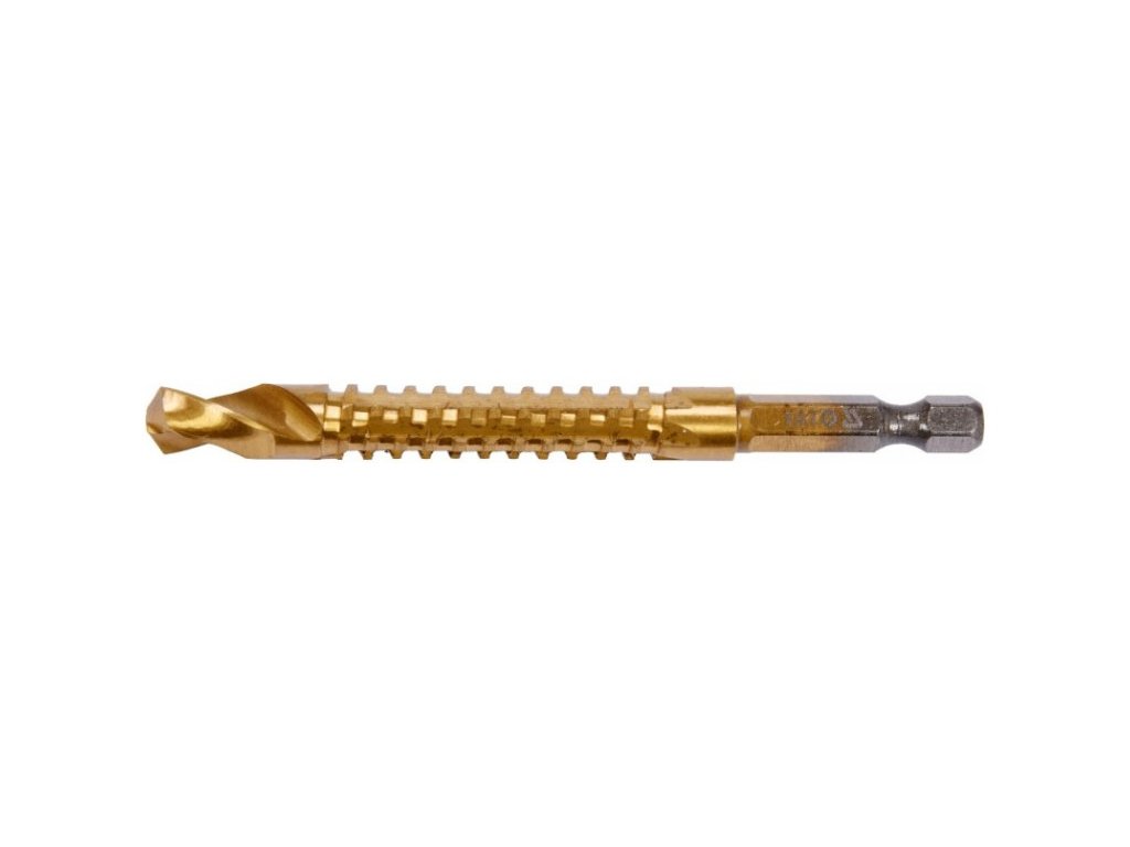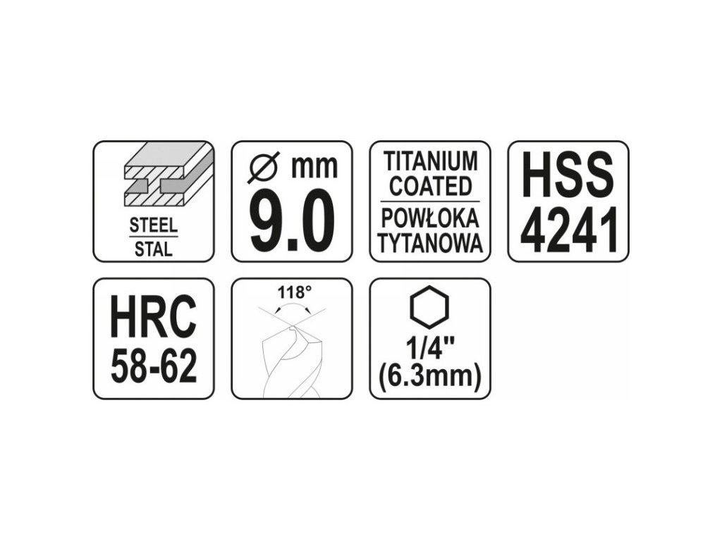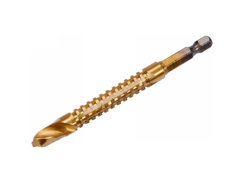 9 mm-es Yato YT-44827 fém marófúró. A marófúró minőségi, nagy sebességű HSS 4241 acélból készült, titán bevonattal. Professzionális, ipari alkalmazásokra szánva. Az HSS STAL többször gyorsabb fúrást biztosít rozsdamentes, saválló és szerkezeti acélban. A 118°-os hegyesszögű "Split Point" keresztpengével előzetes jelölés nélküli fúrás is lehetséges, még nagy átmérőjű fúrások esetén is, tökéletes középpontozást garantálva. Lehetővé teszik a fúrást minden irányban és bármilyen szögben, ideális lyukak fúrásához, beleértve az ajtózárat is. A csiszolt felület kiváló fúrási pontosságot biztosít. Egy darab acélból készültek, így nagyon erősek és tartósak. A 58–62 HRC keménységű titán-nitrid bevonat ellenáll a sérüléseknek és a nyúlásnak, megőrizve a fúrási geometriát • Az alacsony fúrási hőmérséklet és a gyors hőelvezetés nem okoz cink beolvadást és a következő fúrókorróziót • A kisebb súrlódási tényező korlátozza a forgácsok és forgácsok tapadását. 1/4 ″ hatszögű fogantyú (6,3 mm).