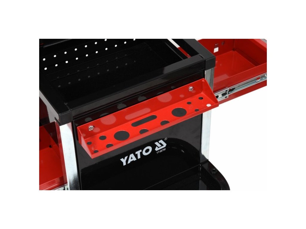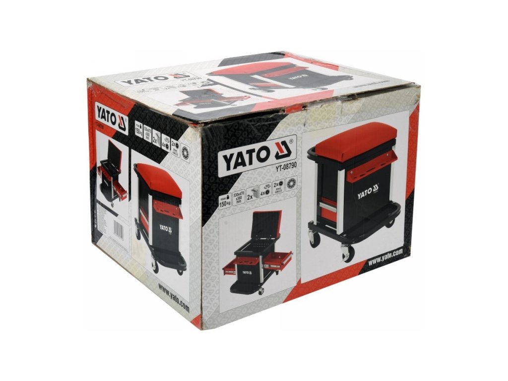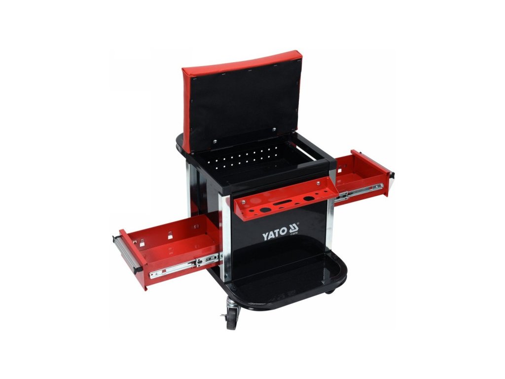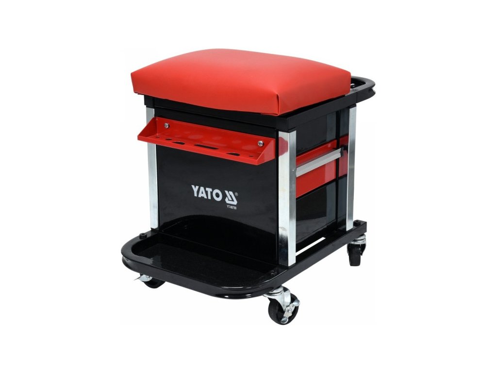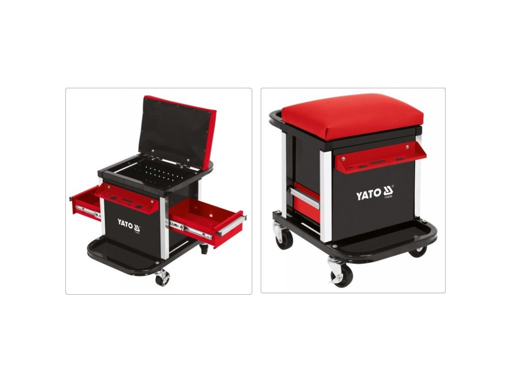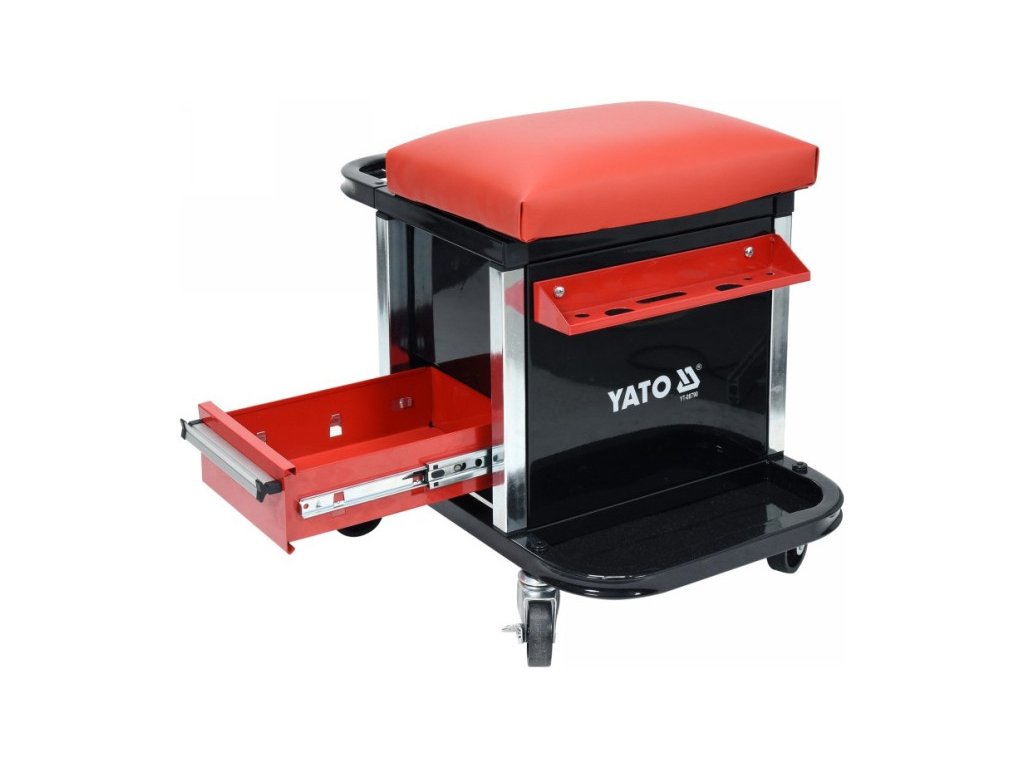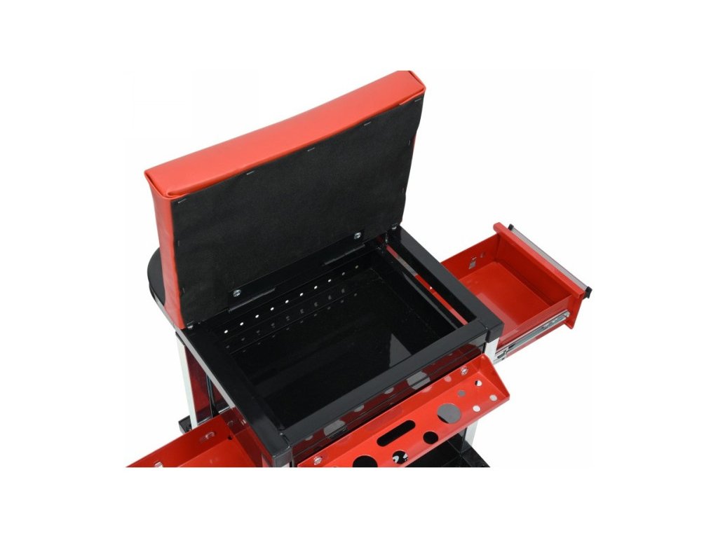 Dielenská stolička s maximálnou nosnosťou 150 kg, s mäkkým vinylovým poťahom odolným voči tukom a olejom, odolná oceľová konštrukcia, 4 otočné kolieska, z toho 2 brzditeľné, dve zásuvky s guľôčkovým vedením.