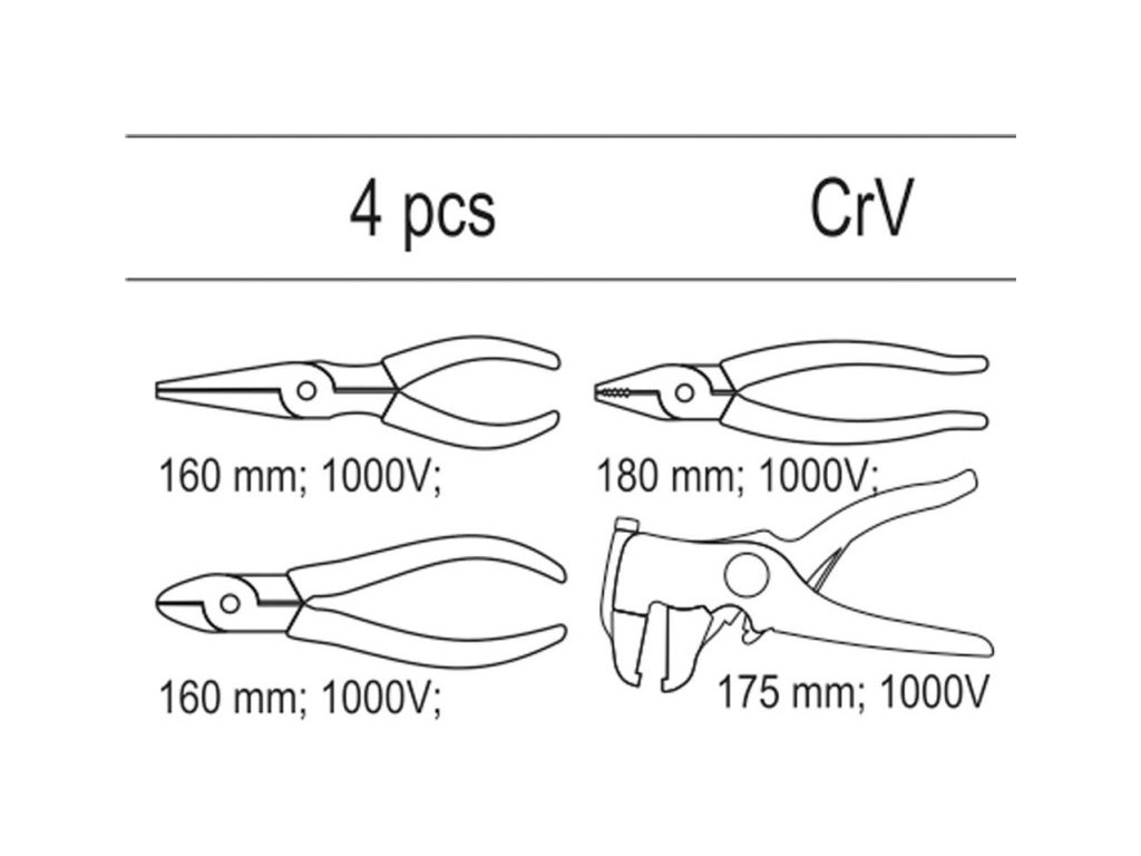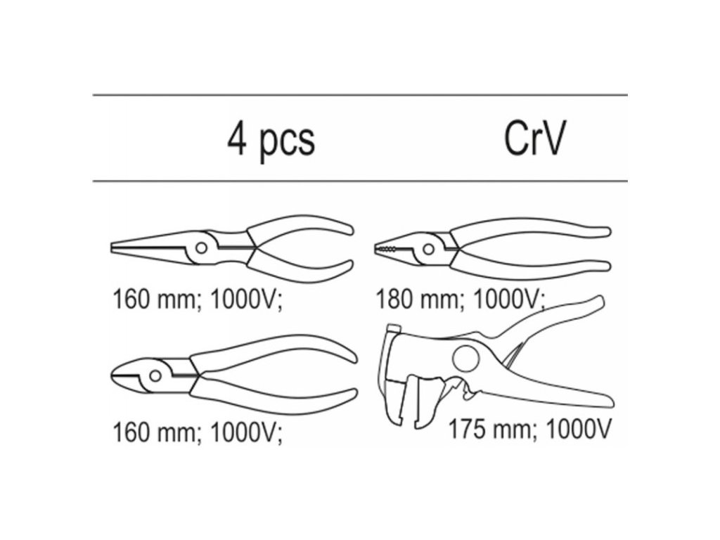 Sada 4 kusov klieští s izoláciou do 1000 V (zásuvková vložka) YATO