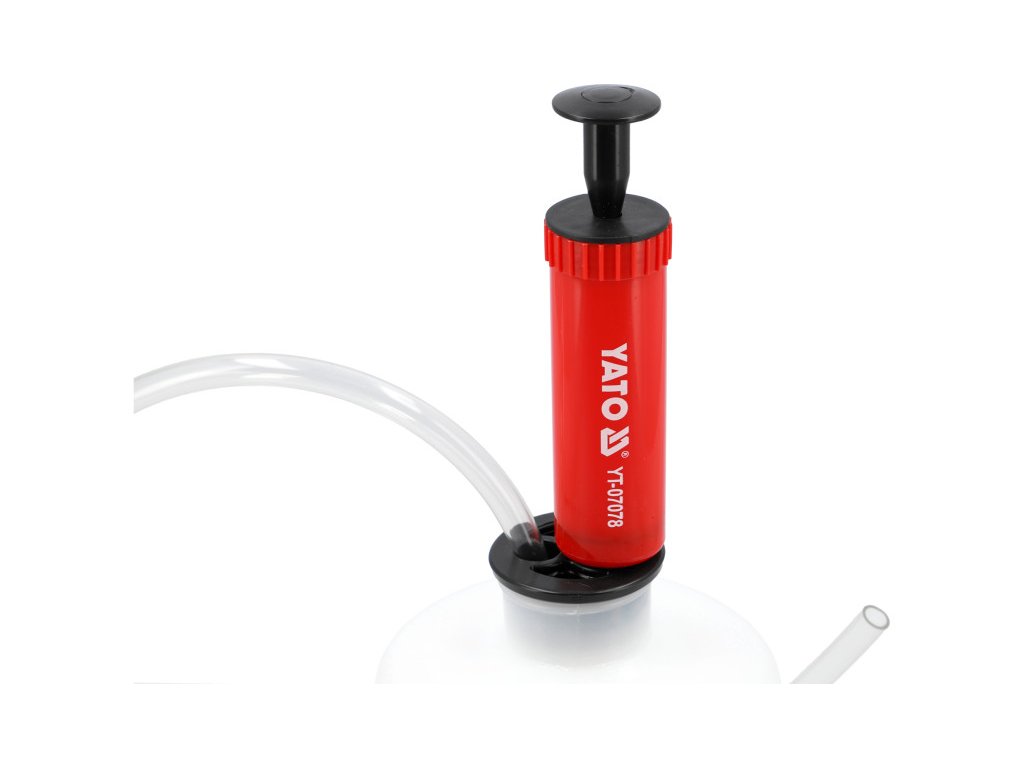 1,6 literes pumpa olaj és működtető folyadékok cseréjéhez. Lehetővé teszi a folyadékok tiszta kipumpálását vagy utántöltését, pl. motorolaj, hűtőfolyadék és fékfolyadék, benzin, egy rugalmas csőn keresztül.