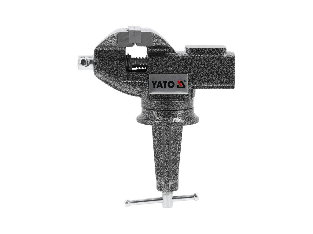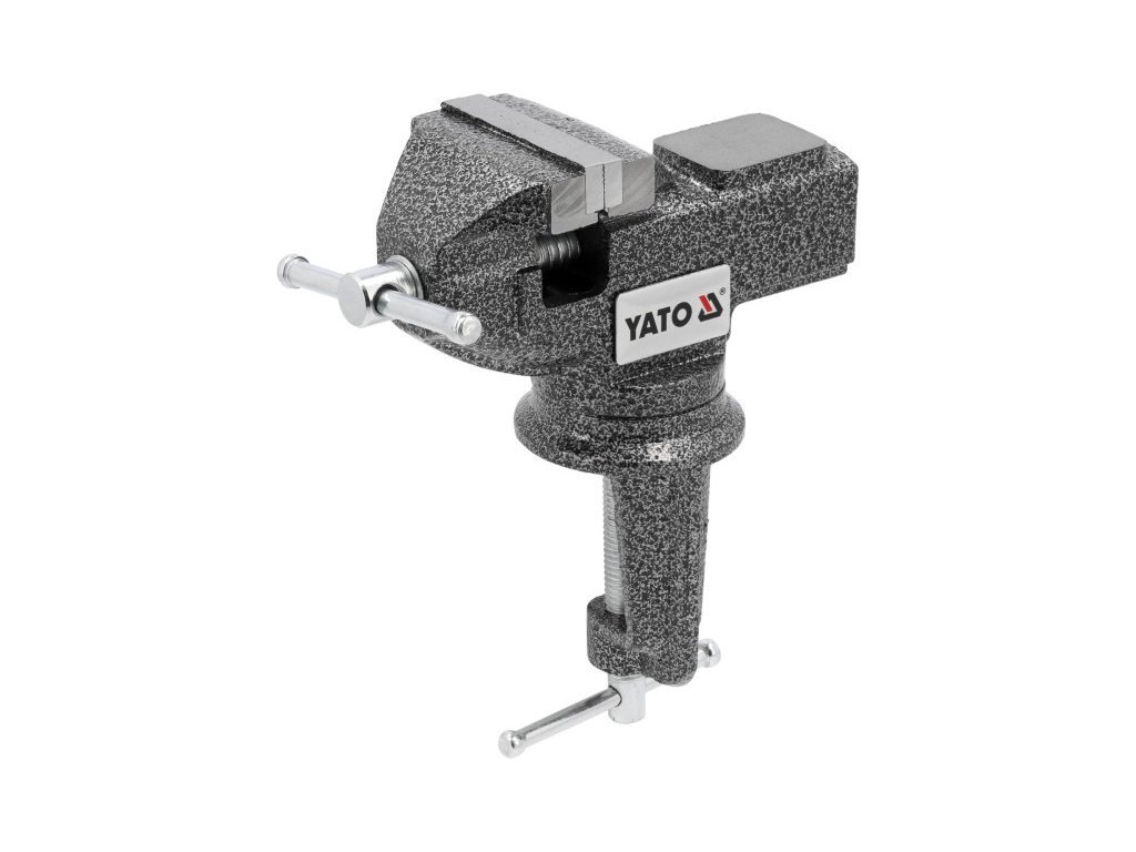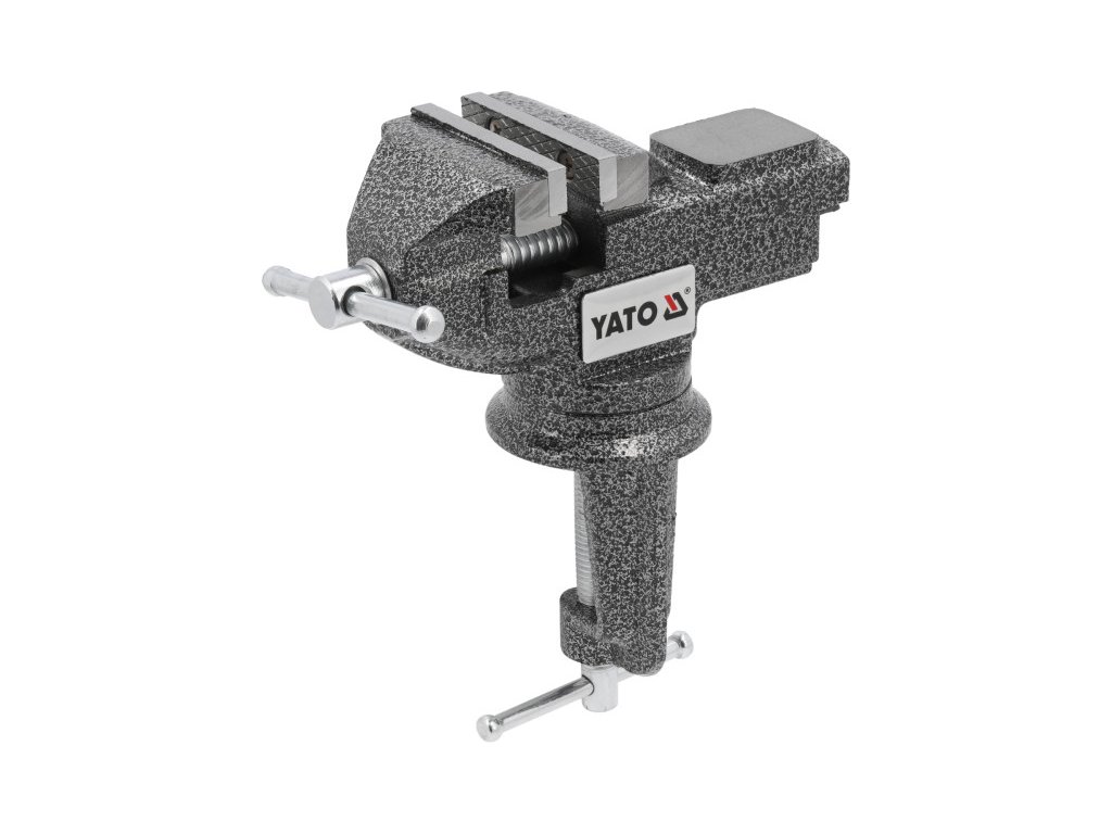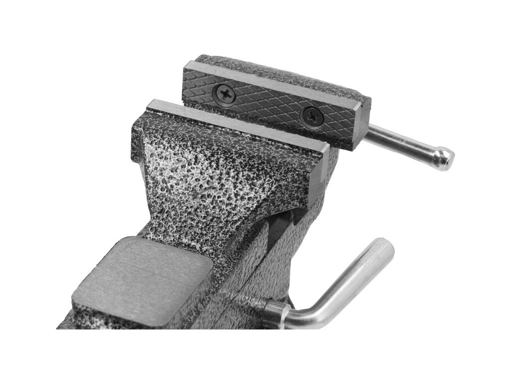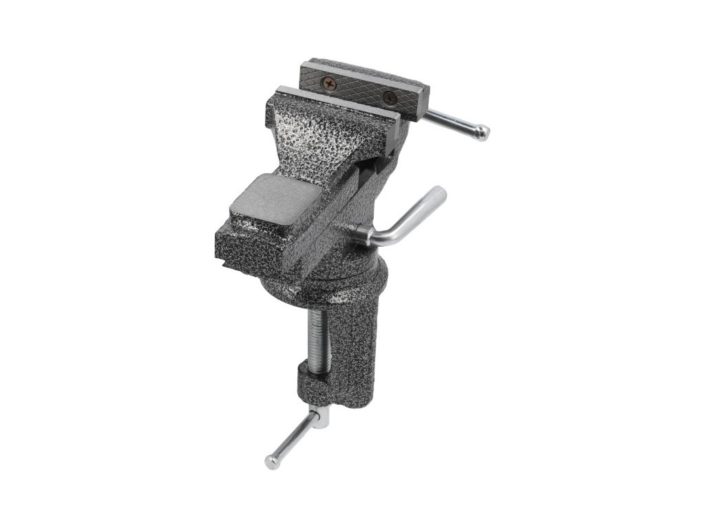 360°-ban forgatható asztali szorító keményített acél szájjal és öntöttvas testtel. Biztosítja az elemek stabil rögzítését mechanikai feldolgozás során.