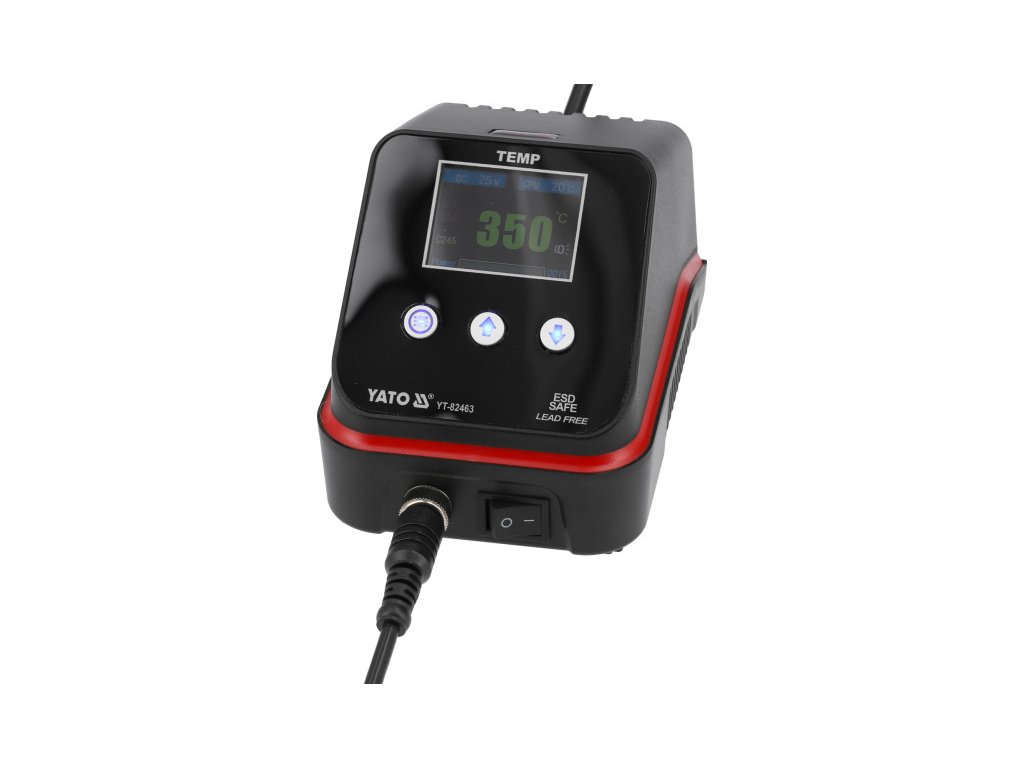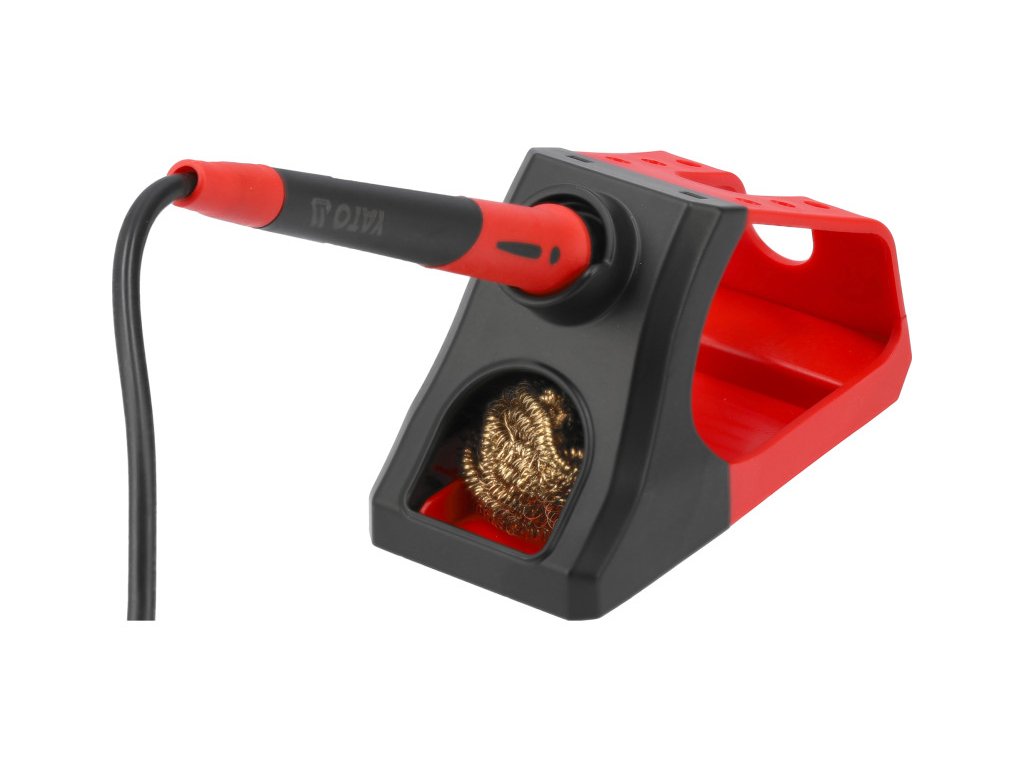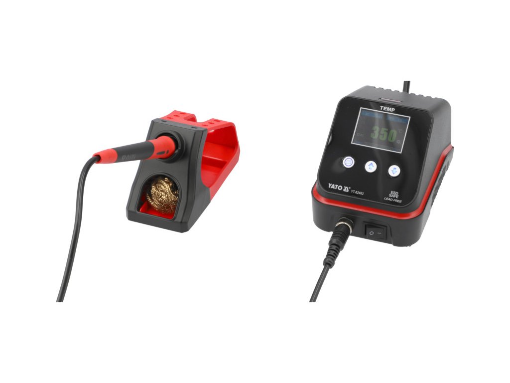 Forrasztóállomás színes LCD kijelzővel, hőmérséklet szabályozással és kalibrálással, alvó és kikapcsoló funkciókkal és három memória csatornával. 245-ös típusú hegyekkel működik. Mindössze három másodperc alatt melegíti fel a pengét 350°C-ra. A forrasztópáka tokja lehetővé teszi a forrasztóhegyek gyors cseréjét. A tok tápkábele rugalmas, hőálló szilikon burkolatban van. Forrasztópáka állvány sárgaréz forgács tisztítóval és 245-ös típusú K forrasztóhegy tartozék.