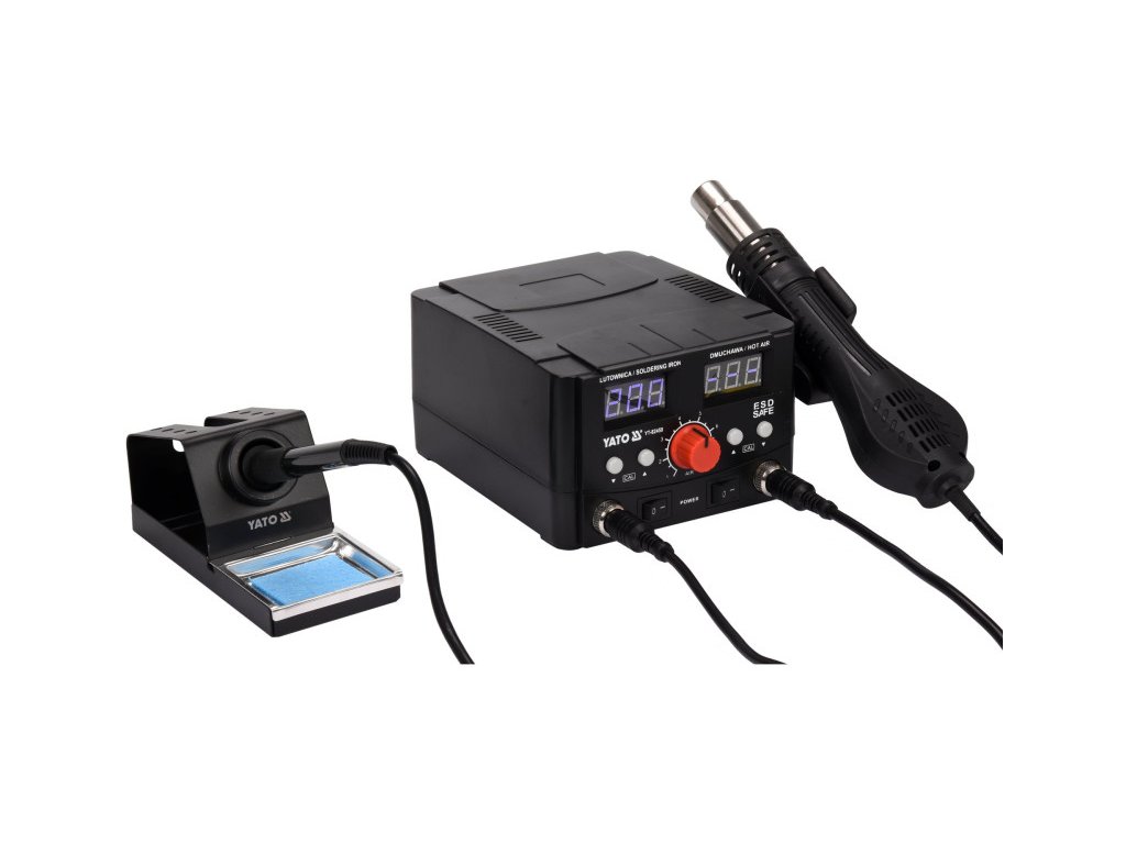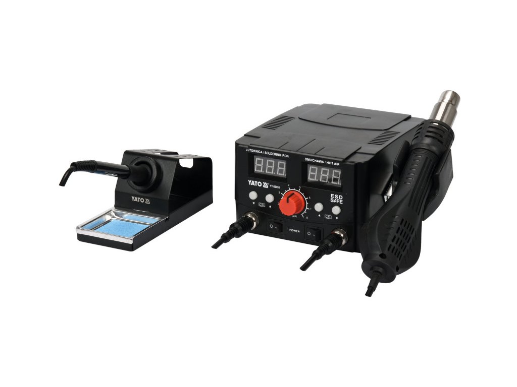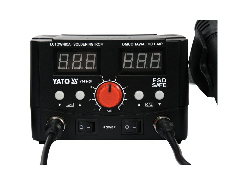 A 2 az 1-ben hőlégfúvós forrasztóállomás YT-82458 szimbólummal az ESD-safe technológiával készült, ami garantálja, hogy a házon nincs felhalmozódott elektrosztatikus töltés. Ez csökkenti az érzékeny SMD áramkörök károsodásának kockázatát. A forrasztóállomás mintegy 15 másodperc alatt melegszik fel 350°C működési hőmérsékletre, a hőfúvás pedig körülbelül 10 másodperc alatt.