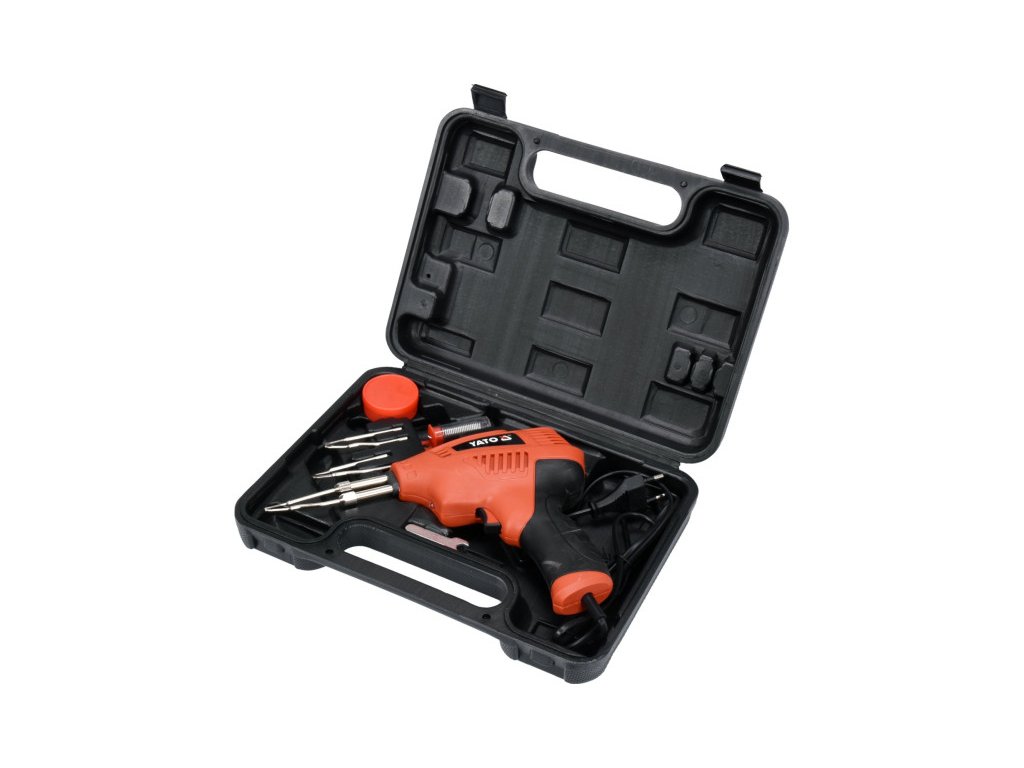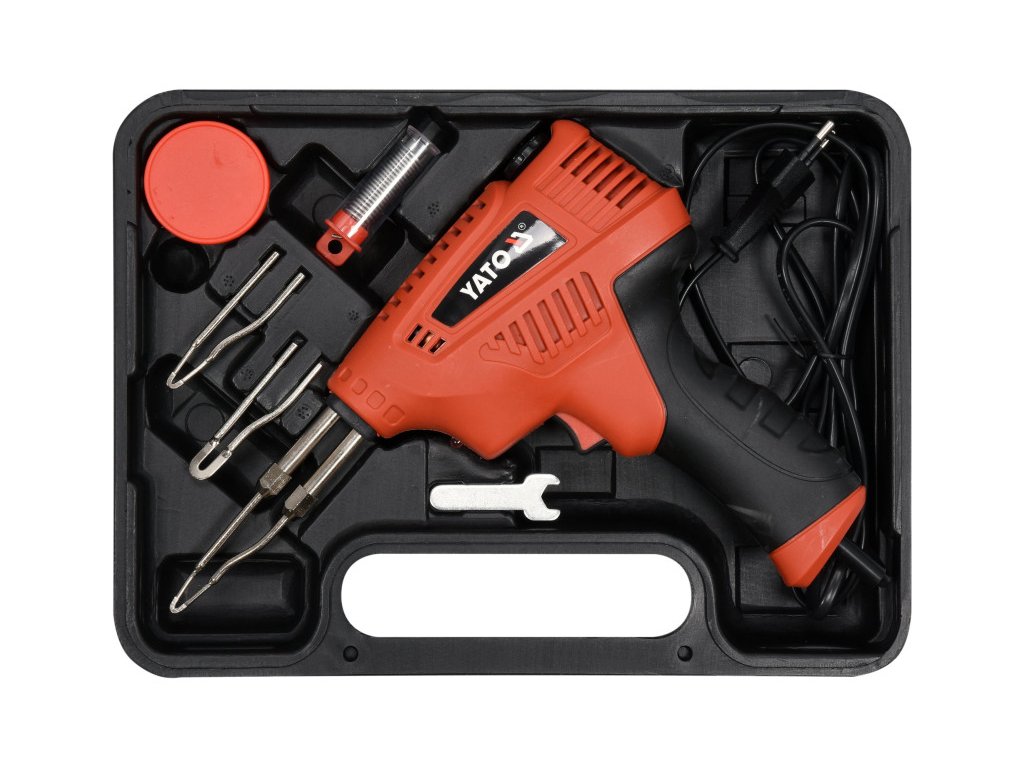 Transzformátoros forrasztópáka YT-82451 nagyon magas teljesítménnyel, minőségi anyagokból készült, ergonomikus kialakítással. A munkaterület foltvilágítása és a csúszásmentes anyag a nyélben pozitívan befolyásolja a munka kényelmét. A 200W teljesítmény nagyon gyors felmelegedést garantál. A legmagasabb üzemmódban és az első beépített forrasztóhegy használatával a forrasztópáka csak 8 másodperc alatt éri el a körülbelül 350°C hőmérsékletet