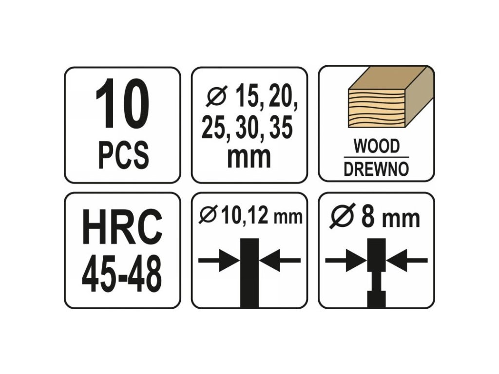 Sada vrtákov s hrotmi 10 kusov 15 - 35 mm YATO