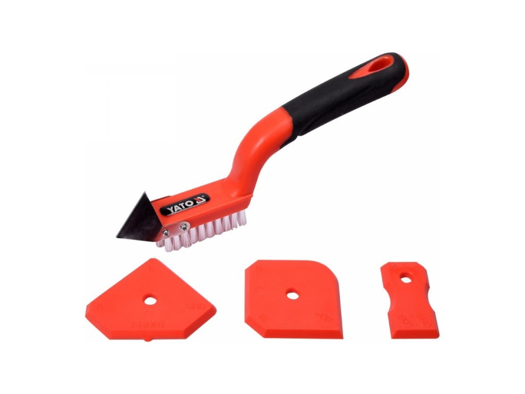 - három rugalmas spatulát profilozott élekkel és sarkokkal, melyek megfelelnek a különböző fugaszélességeknek .