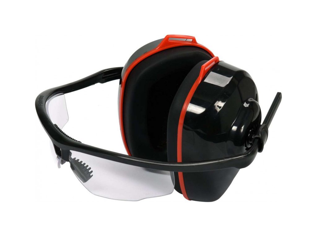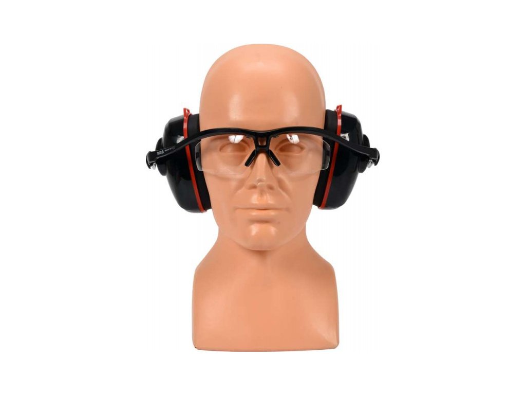 A YT-74636 cserélhető lencséjű, világos színű biztonsági szemüveggel integrált fültok nem csak a hallást, de a felhasználó szemét is védi. A szemvédők állítható gömbcsuklókkal egyben fejpántként is működnek, ami lehetővé teszi a munkavégzést például védősisakban, anélkül, hogy plusz nyomást gyakorolnának a fejre.