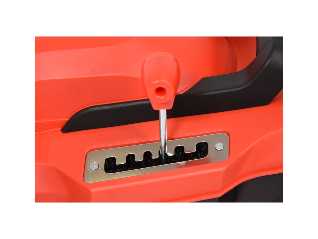 A fűnyíró tartós, masszív és nagy kerekei lehetővé teszik a nehezebb terepen való munkát. A fűnyíró nagy teljesítménye (1800W), a 3300 fordulat/perces magas fordulatszám és a széles kés (38cm) gyors és alapos fűnyírást tesz lehetővé, és a gyepnek megfelelő kinézetet ad.
