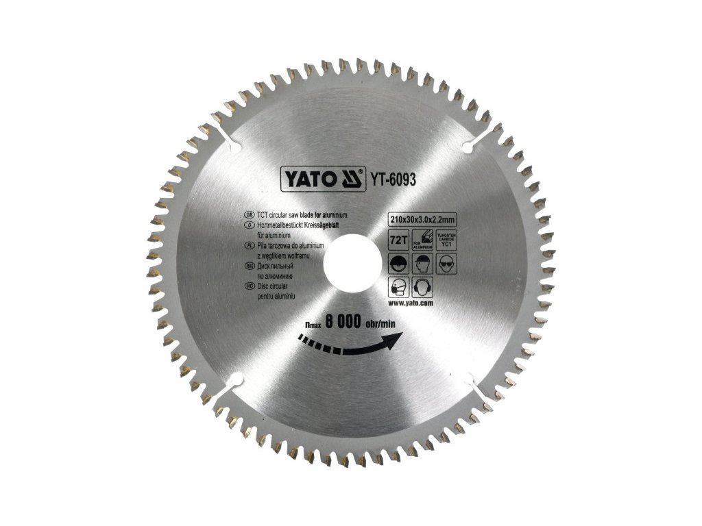 Pílový kotúč na hliník, vhodný pre väčšinu píl a pokosových píl na trhu Technické údaje Veľkosť (mm) 210x30x2,2 mm Počet zubov píly 72 Otáčky (ot./min) 8000 Oblasť použitia hliník