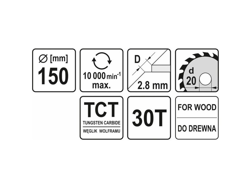 Pilový kotúč na drevo 150 x 20 x 2,0 mm / 30T YATO