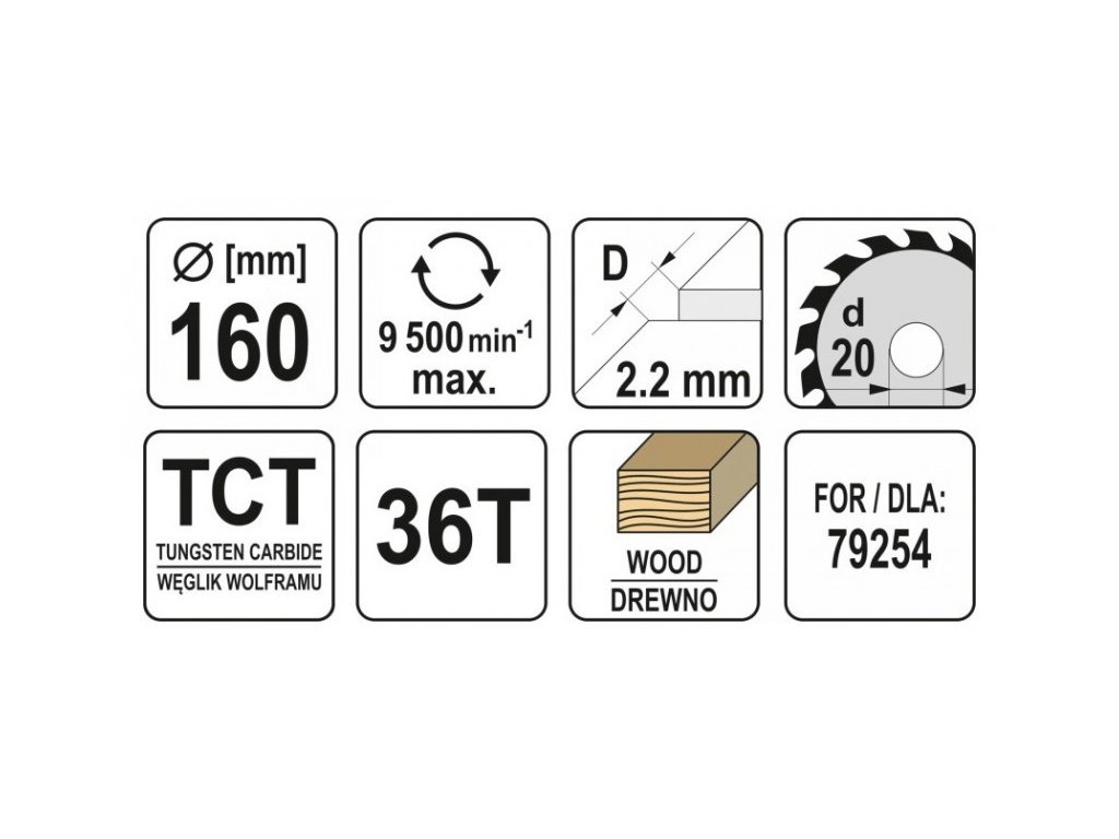 Pilový kotúč na drevo 160 x 20 x 1,5 mm / 36T YATO