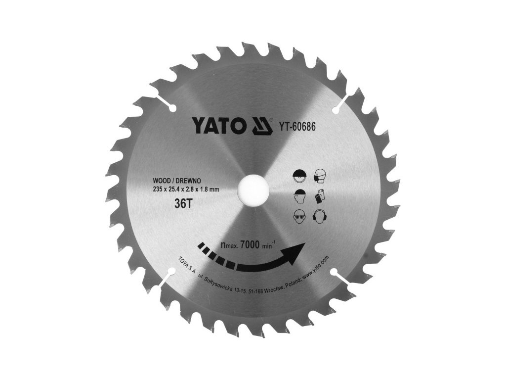 Pilový kotúč na drevo 235 x 25,4 x 1,8 mm / 36T YATO