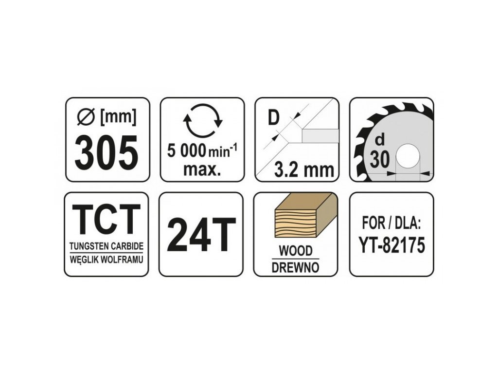 Pilový kotúč na drevo 305 x 30 x 2,2 mm / 24T YATO