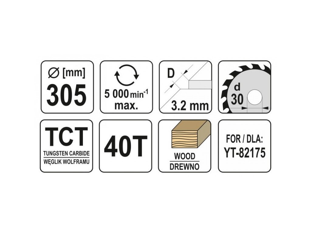 Pilový kotúč na drevo 305 x 30 x 2,2 mm / 40T YATO