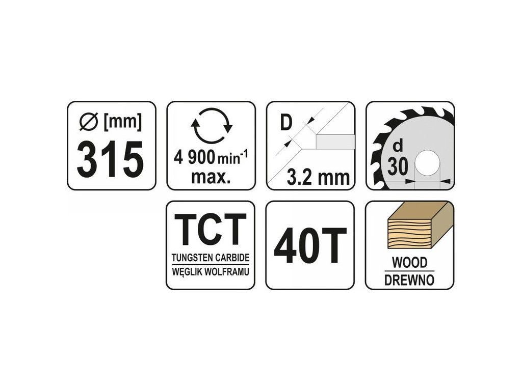 Pilový kotúč na drevo 315 x 30 x 3,2 mm / 40T YATO