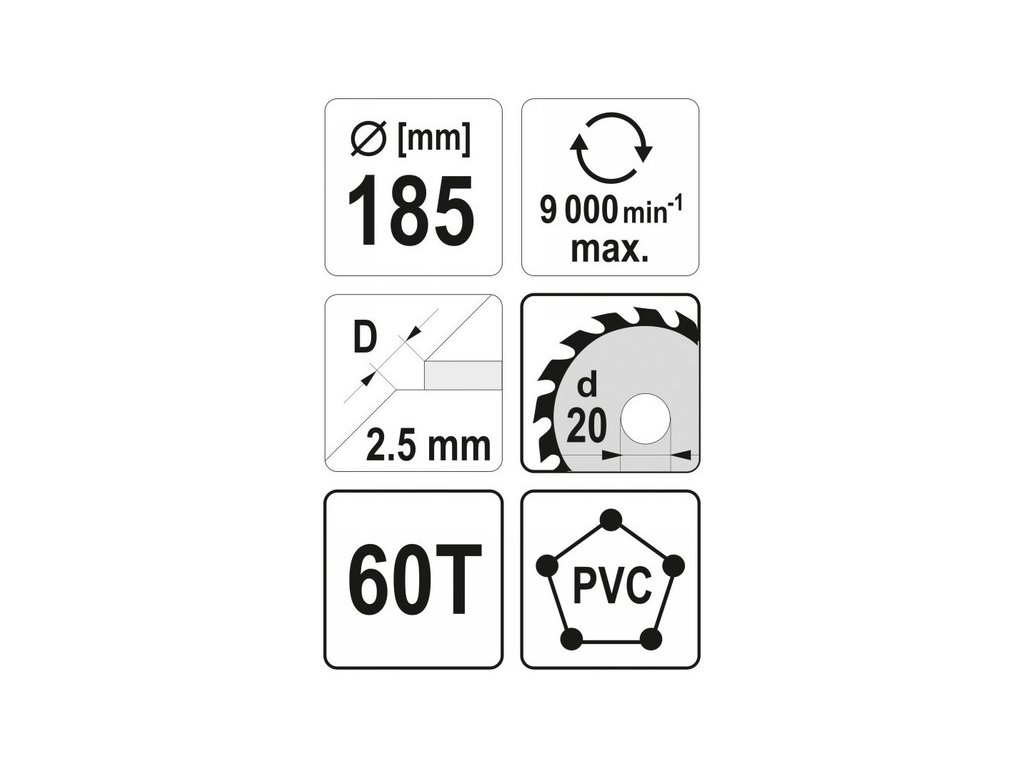 Pilový kotúč na PVC 185 x 20 x 1,5 mm / 60T YATO