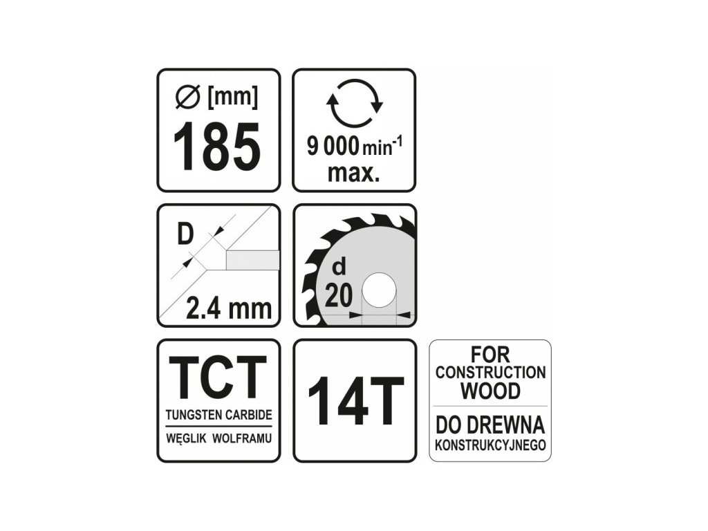 YATO Pílový kotúč na tŕňové drevo 185 x 20 x 2,4 mm / 14T