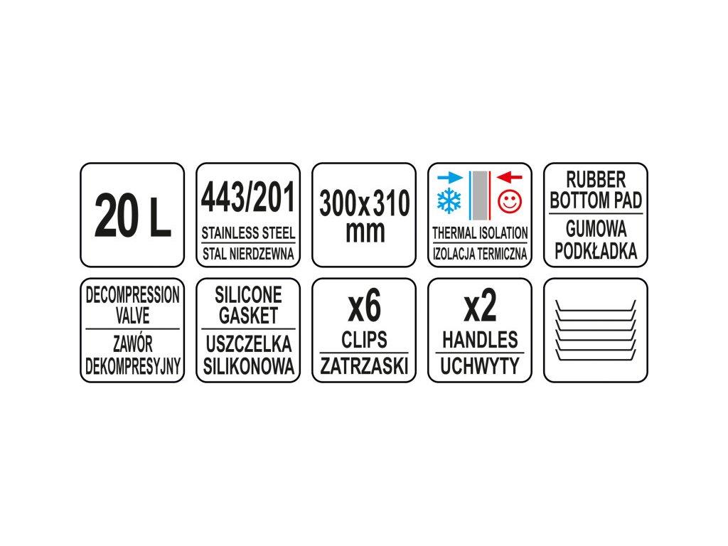 YATO GASTRO vaňa na rozvoz jedla dvojplášťová 20 litrov inox