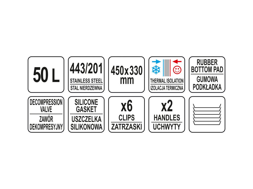 YATO GASTRO vaňa na rozvoz jedla dvojplášťová 50 litrov inox