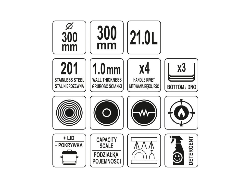 YATO GASTRO Hrniec s pokrievkou 21 litrov 300 x 300 mm inox