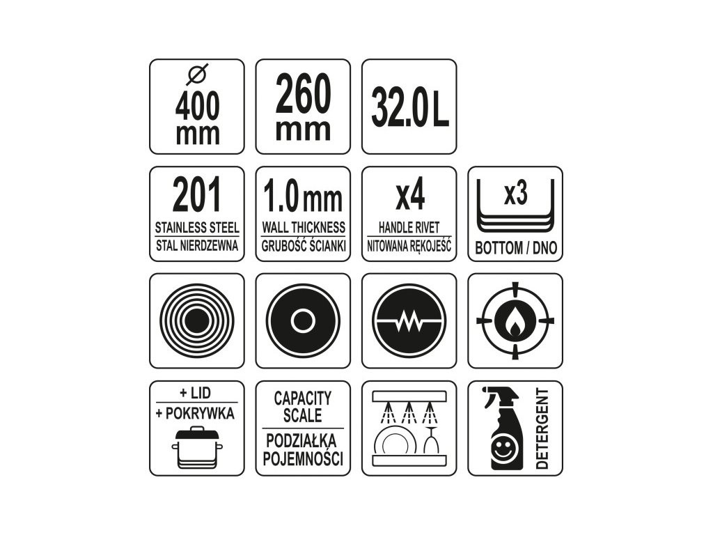 YATO GASTRO Hrniec s pokrievkou 32 litrov 400 x 260 mm inox