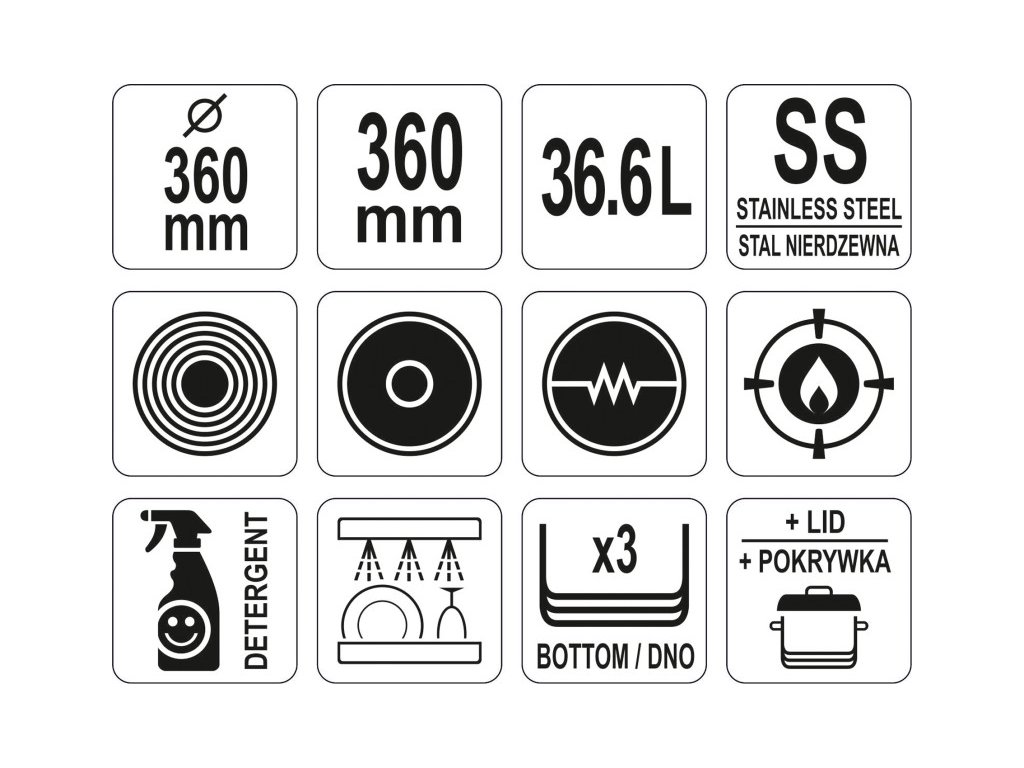 YATO GASTRO Hrniec s pokrievkou 36,6 l 360 x 360 mm inox