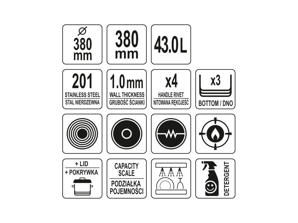YATO GASTRO Hrniec s pokrievkou 43 litrov 380 x 380 mm inox