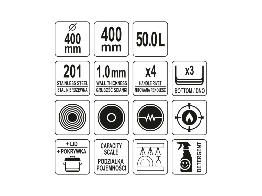 YATO GASTRO Hrniec s pokrievkou 50 litrov 400 x 400 mm inox