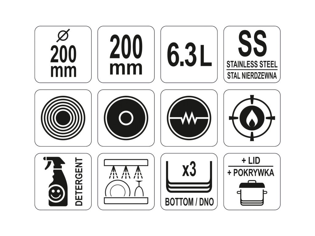 Hrniec s pokrievkou 6,3 l 200 x 200 mm inox YATO GASTRO