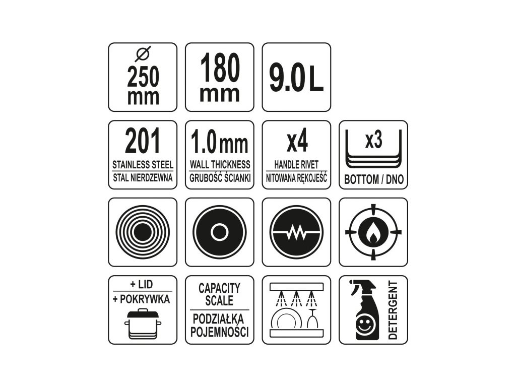 YATO GASTRO Hrniec s pokrievkou 9 litrov 250 x 180 mm inox