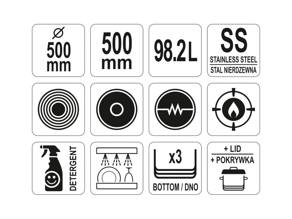 YATO GASTRO Hrniec s pokrievkou 98,2 l 500 x 500 mm inox