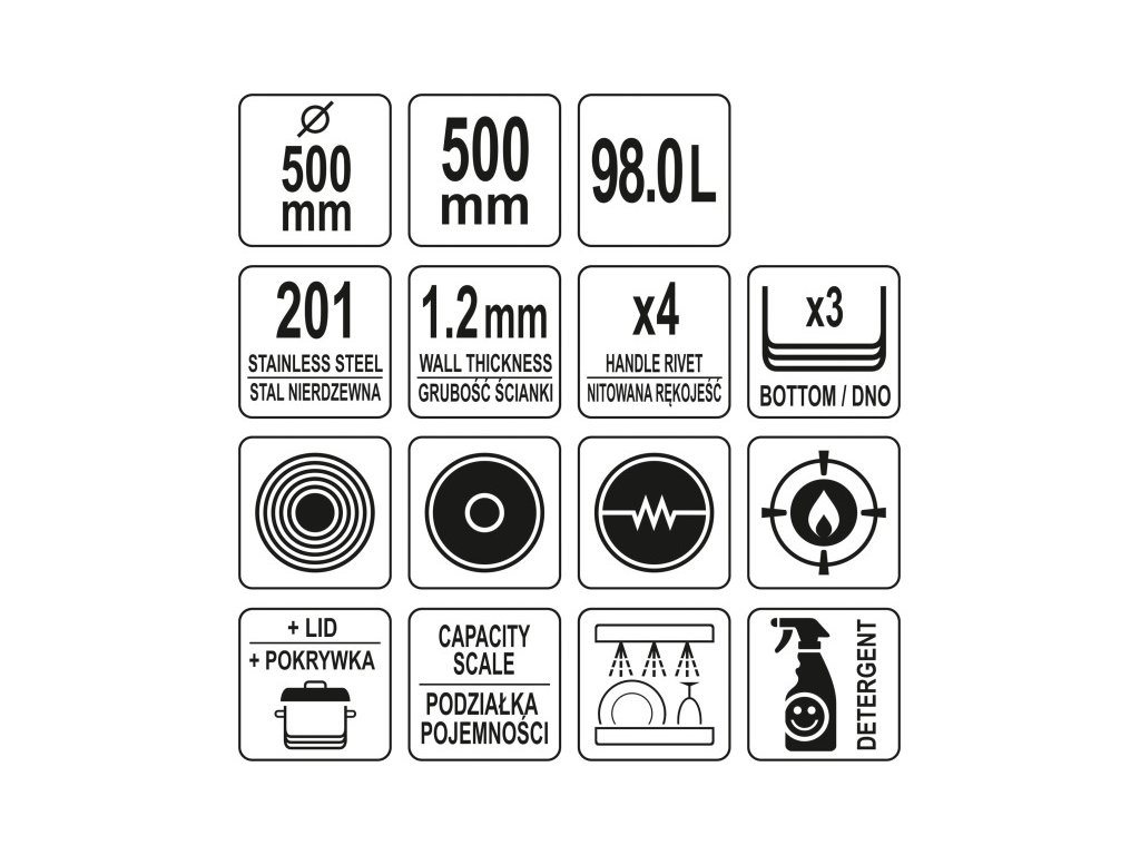 YATO GASTRO Hrniec s pokrievkou 98 litrov 500 x 500 mm inox