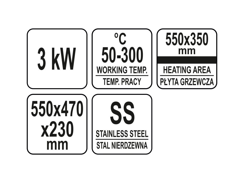 YATO GASTRO Elektrický gril 550 mm 3000 W plochý plech na pečenie