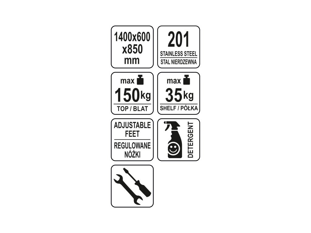 Pracovný stôl YATO GASTRO Inox so spodnou policou