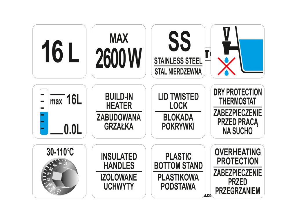 YATO GASTRO Elektrický ohrievač nápojov 16 litrov 2100-2600 W inox