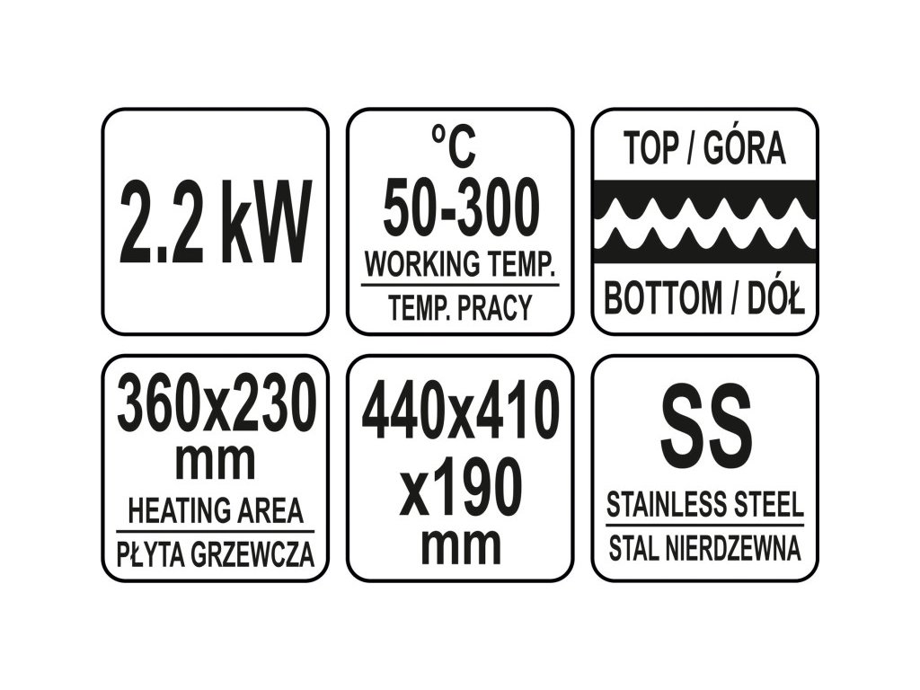 YATO GASTRO Elektrický kontaktný gril 440 mm 2200 W rebrovaný plech na pečenie
