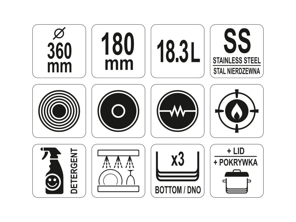 Veko na nožičkách 18,3 l 360 x 180 mm inox YATO GASTRO