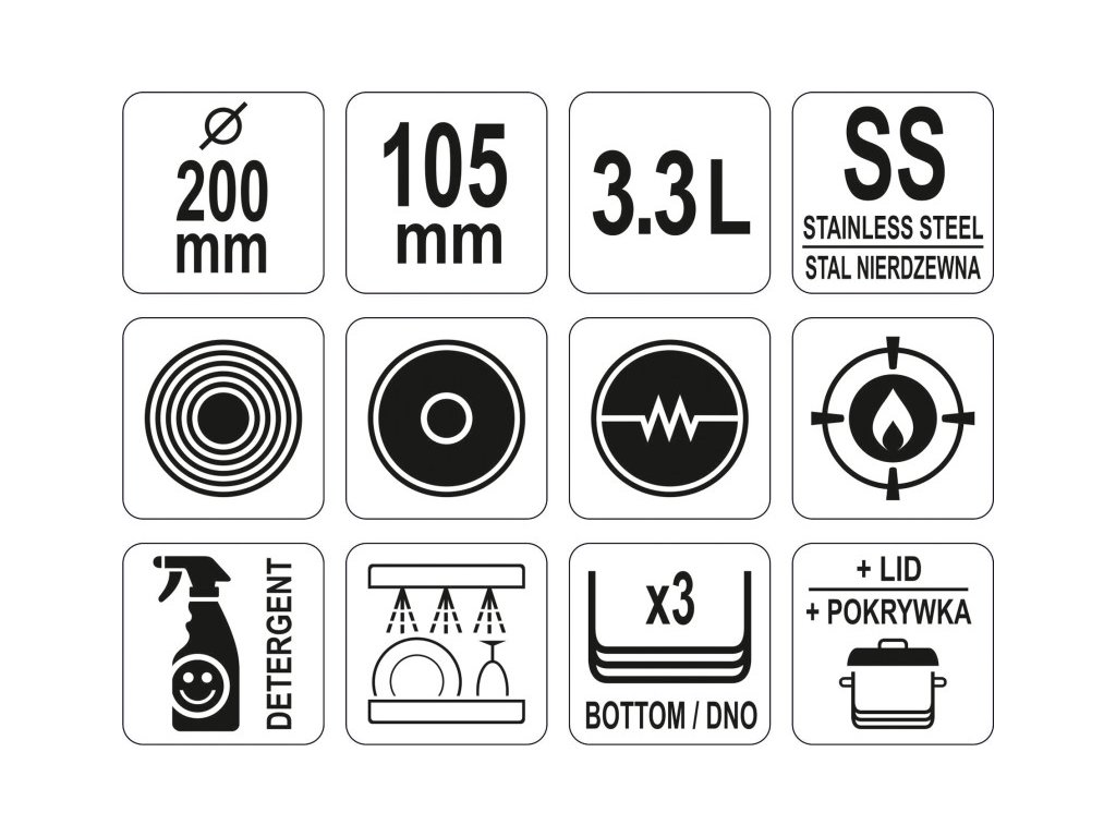 YATO GASTRO S rukoväťou nožným vekom 3,3 litra 200 mm inox