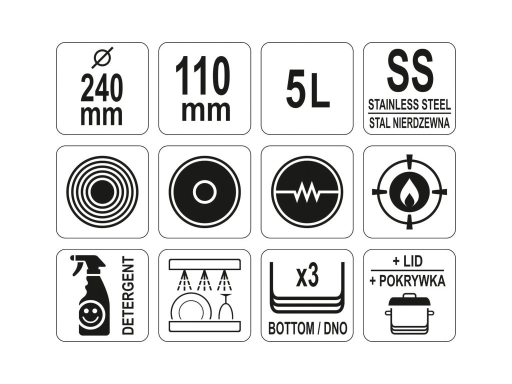 Kastról s pokrievkou 5 l 240 x 110 mm inox YATO GASTRO