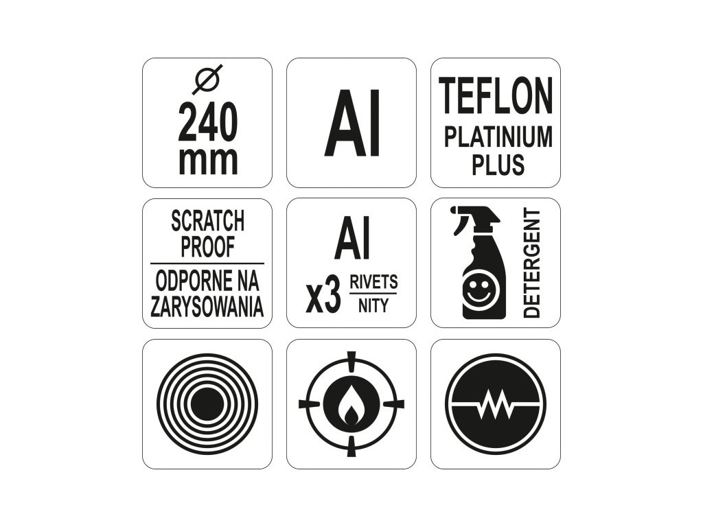 Indukčná panvica s teflónovým povrchom 240 mm Hliník YATO GASTRO