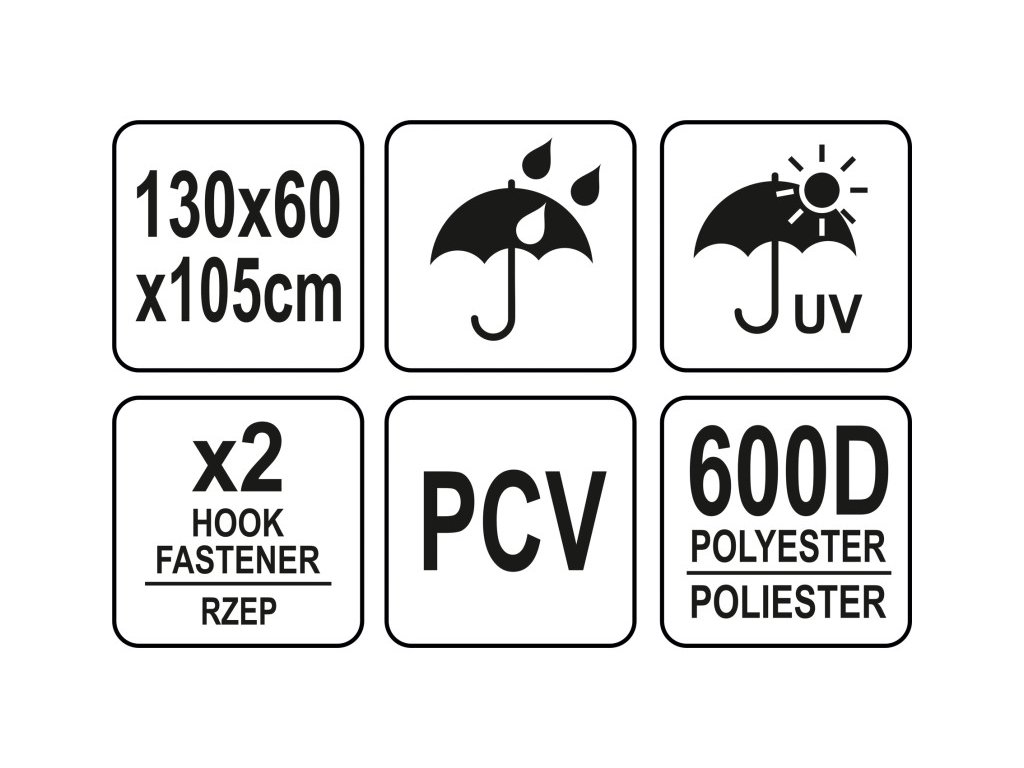 - A kibontott huzat méretei: 130 x 60 x 105cm (hosszúság x szélesség x magasság)