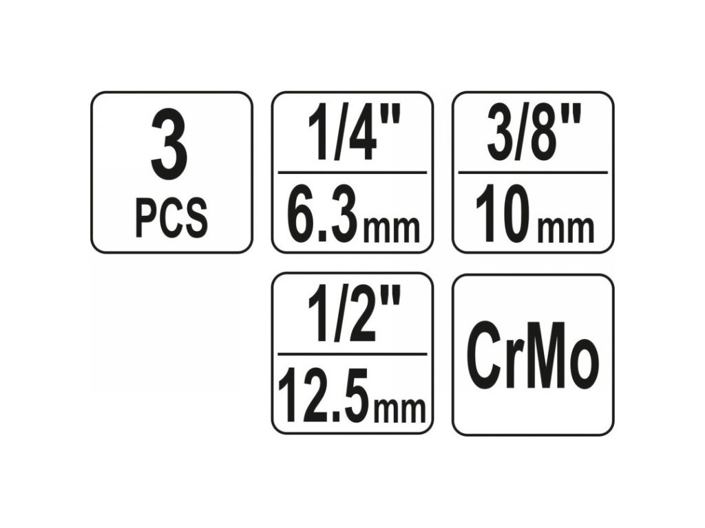 YATO súprava spojok stroja 3 diely 1/4 - 3/8 - 1/2