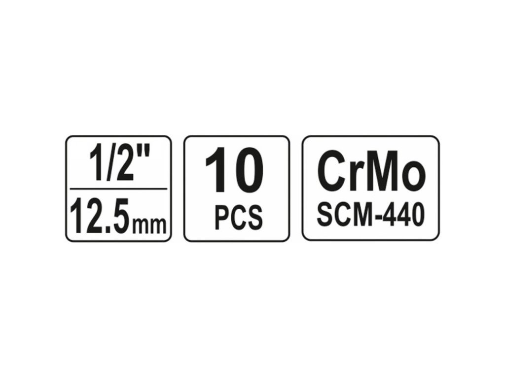 Sada nadstavcov 1/2” rázové šesťhranných 10 ks 10-22 mm CrMo