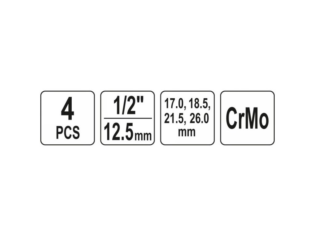 YATO sada hlavíc 4 ks 1/2” 17-26 mm CrMo